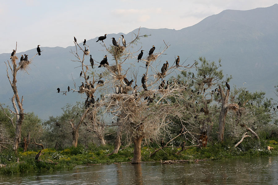 fågelkolonierna på Kerkinisjön Dvärgskarvar och Storskarvarnas kolloni